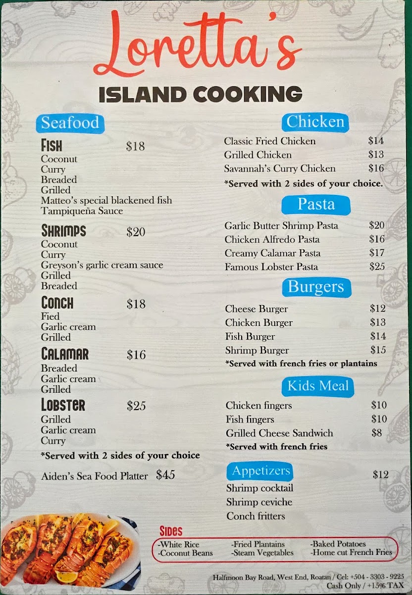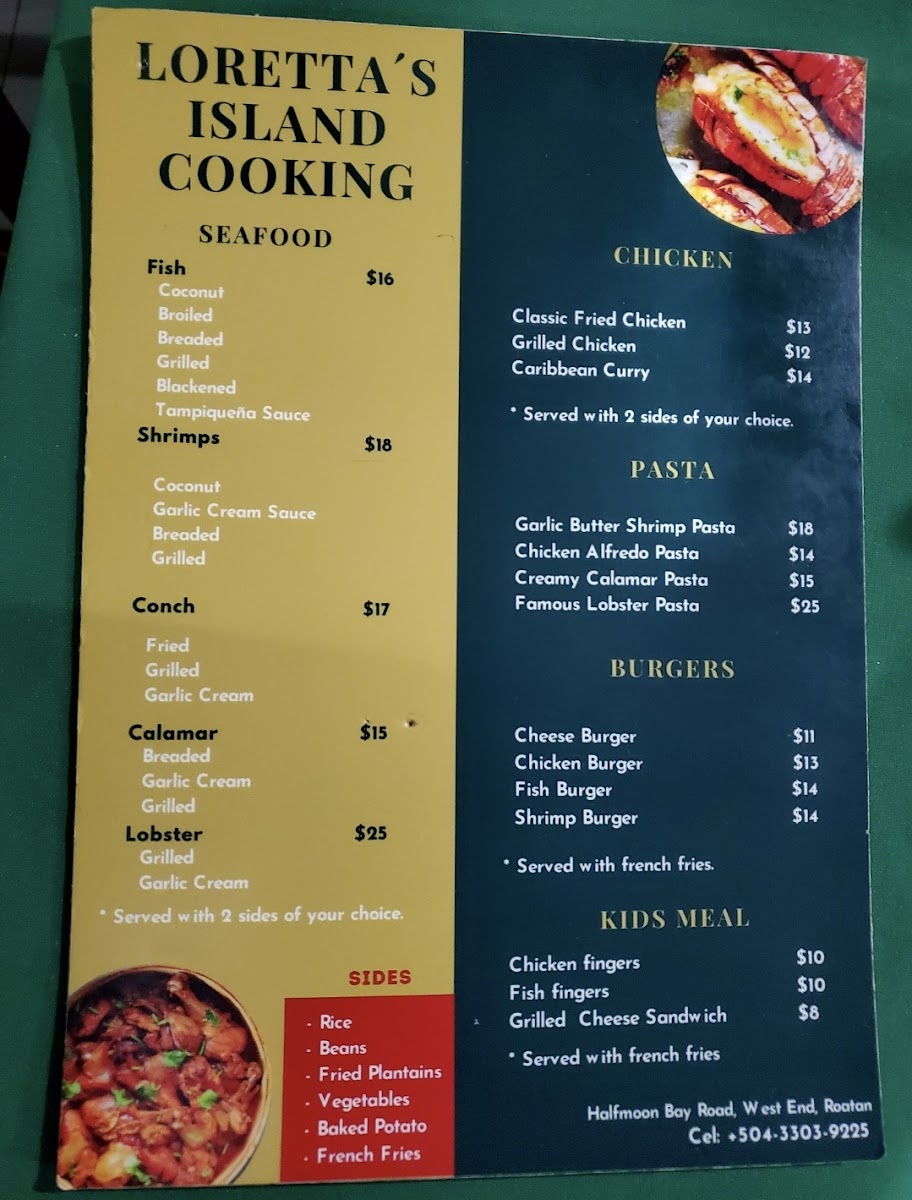With such a diverse selection of dishes, Loretta's Island Cooking ensures there’s something for everyone, whether you're in the mood for seafood, poultry, or something unique with a local touch.